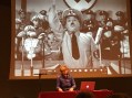 En guise d’introduction à sa conférence « Fausses langues, que traduire ? », Florence Dupont nous présente un passage du Dictateur de Chaplin où ce dernier s’exprime dans un pseudo allemand aux sonorités haineuses : paradoxalement on comprend très bien ce texte incompréhensible. Comme l’oratrice le souligne, la séquence doit