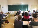 de Vea Kaiser (Presses de la Cité, 2015). Il s’agira ici aussi de traduire une fausse langue en tenant compte de différents paramètres que nous communique Corinna. On s’attelle à la tâche par petits groupes, ou individuellement. Quelques versions sont lues : recours au patois (le picard), à l’argot … Difficile de trouver une solution idéale en si peu de temps. Mais les choix de traduction s’élaborent et se discutent.